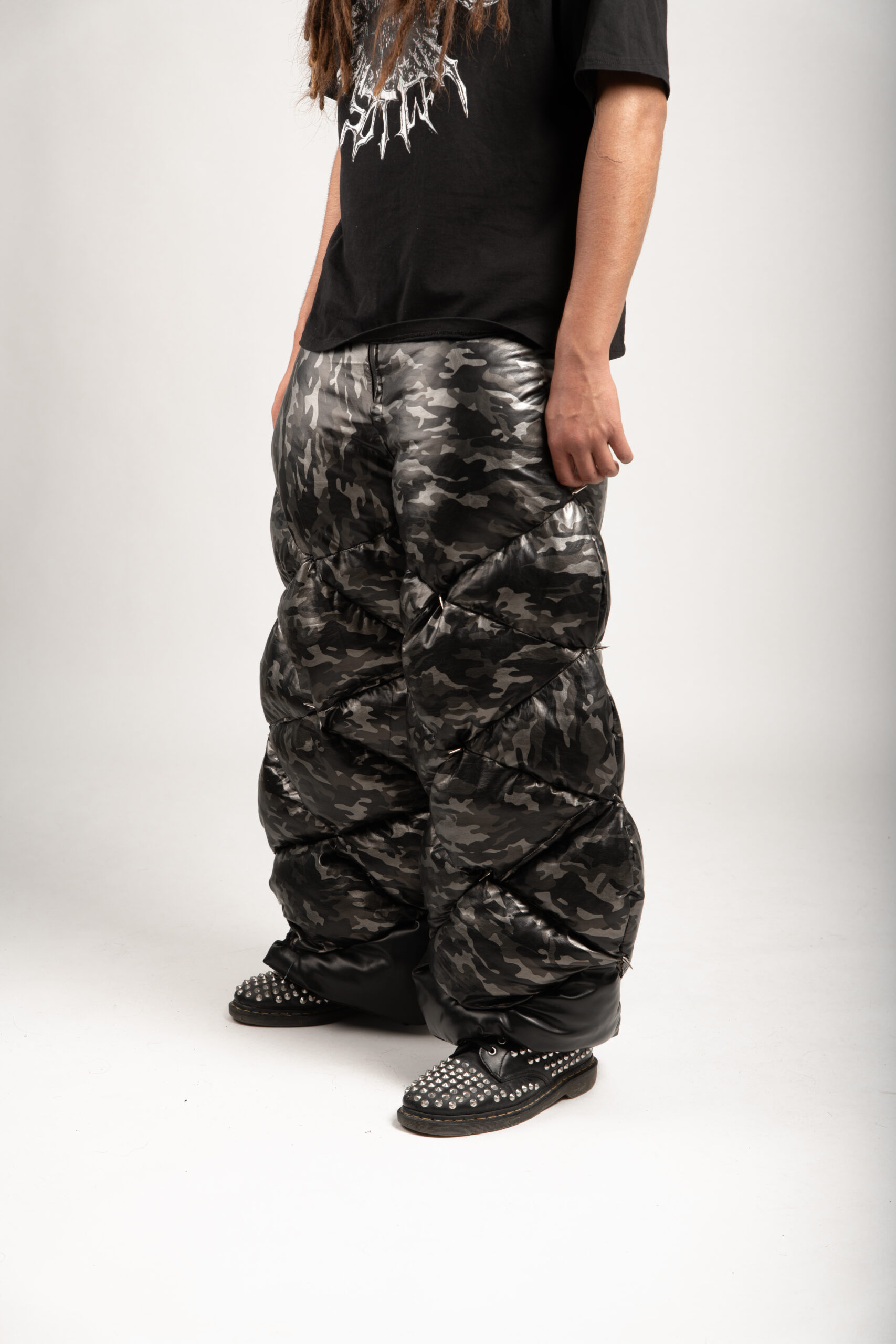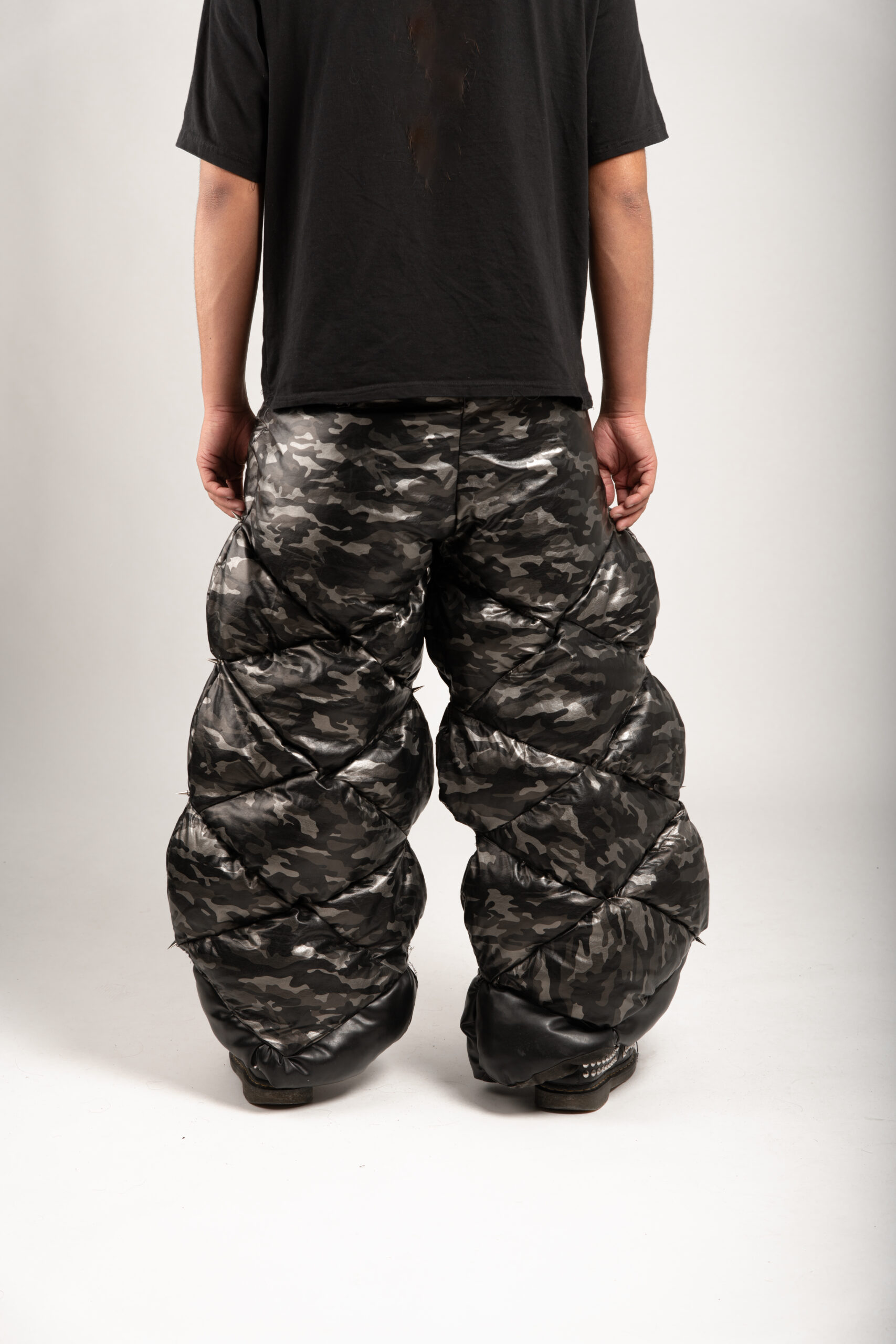 puffer pants with iron spikes